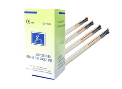 Igły do akupunktury i suchego igłowania z MIEDZIANYM uchwytem i prowadnicą SHEN LONG 100 szt. Igły do akupunktury Shen Long to produkt łączący w sobie najlepsze cechy igieł dostępnych na rynku. Wykonane zostały z najwyższej jakości japońskiej stali chirurgicznej. Materiał ten wyróżnia je pod względem wytrzymałości oraz sprężystości. Potrójny proces ostrzenia i polerowania nadaje im niezwykłą ostrość. Zapewnia ona wysoki komfort pracy dla terapeuty jak również dla samego pacjenta, znacznie ograniczając bolesność zabiegu. Sterylizacja Igieł odbywa się zgodnie z najwyższymi standardami w niskotemperaturowym procesie z wykorzystaniem tlenku etylenu. Daje to gwarancję pełnej sterylności oraz zapewnia bezpieczeństwo pacjentom. Igły do akupunktury i suchego igłowania z miedzianym uchwytem i prowadnicą Shen Long to doskonały produkt, idealny dla terapeutów, którzy w swej codziennej pracy wykonują zabiegi akupunktury oraz suchego igłowania.