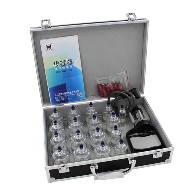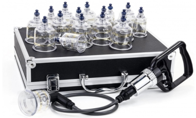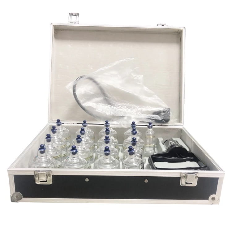 Elegancki zestaw 19 baniek próżniowych w walizce. Zestaw zawiera: