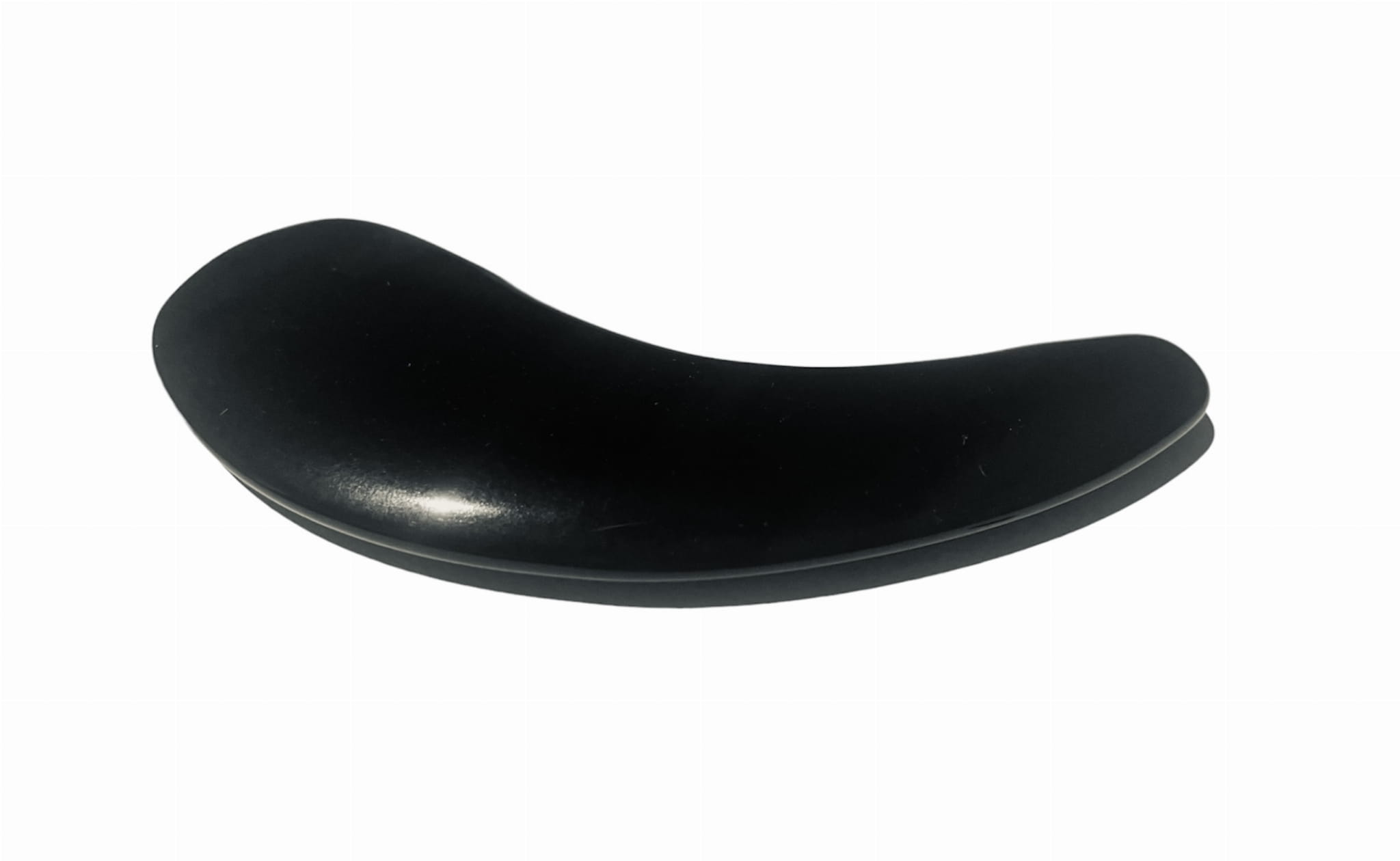 Gua Sha w kształcie bumerangu wykonane z rogu bawoła. Długość: ok. 10 cm Szerokość: ok. 4 cm