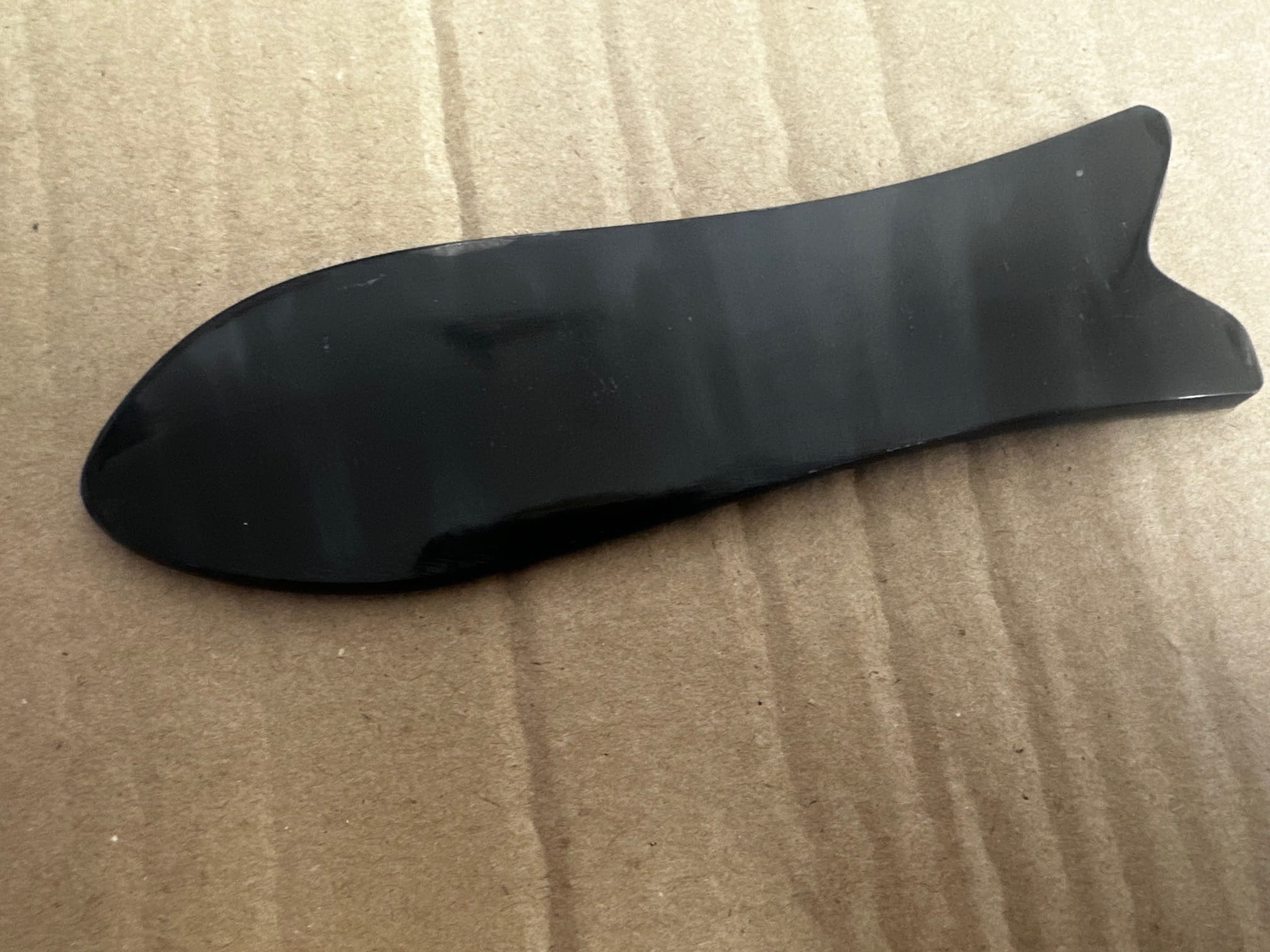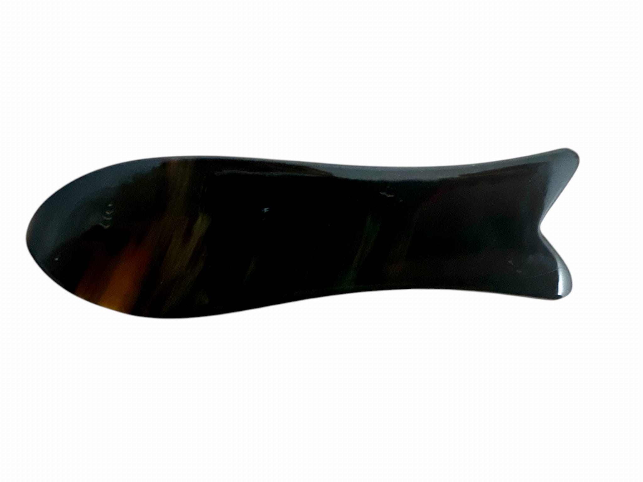 Gua Sha w kształcie ryby wykonane z rogu bawoła. Długość: ok. 12 cm. *GUA SHA posiada drobne rysy powstałe w procesie produkcji!