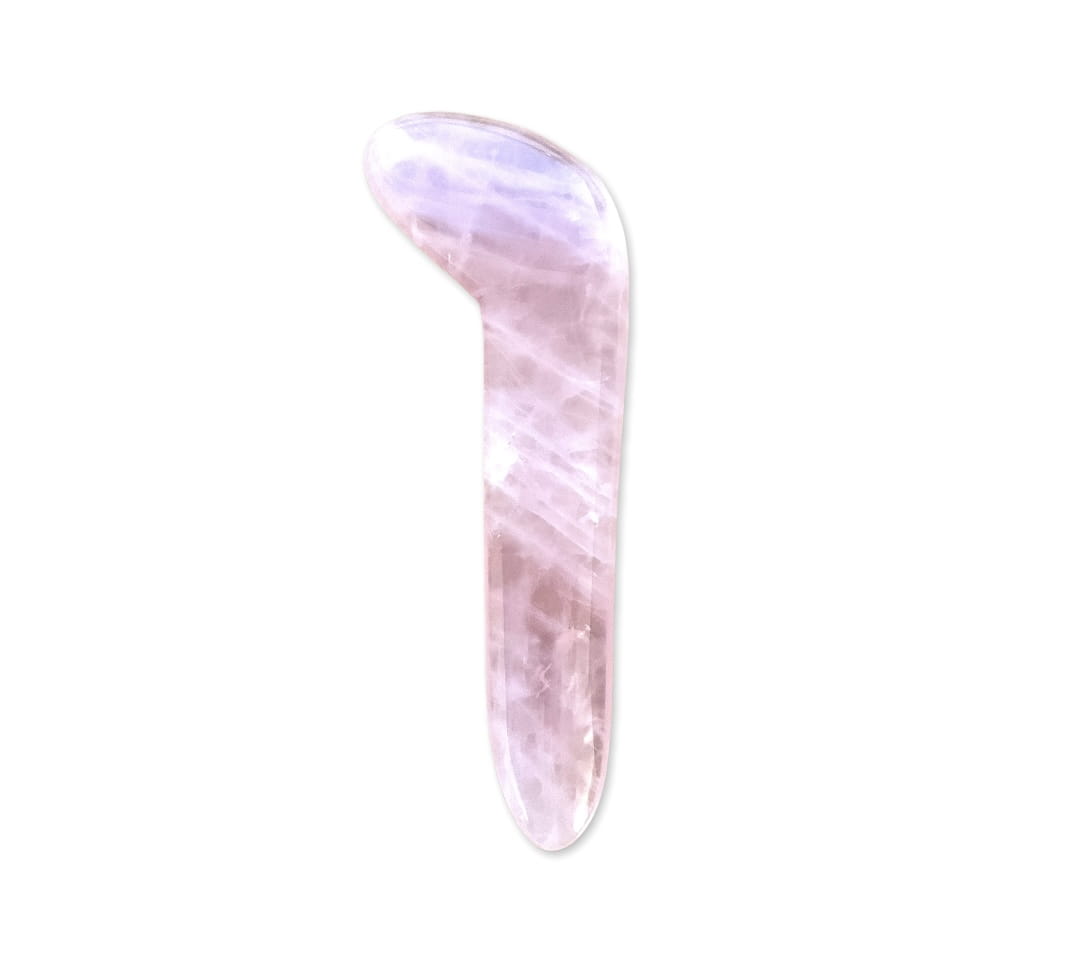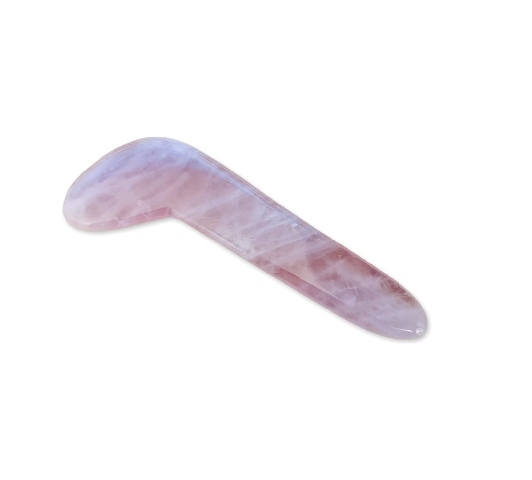 Gua Sha w kształcie litery L wykonane z różowego kamienia kwarcu. Wymiary: