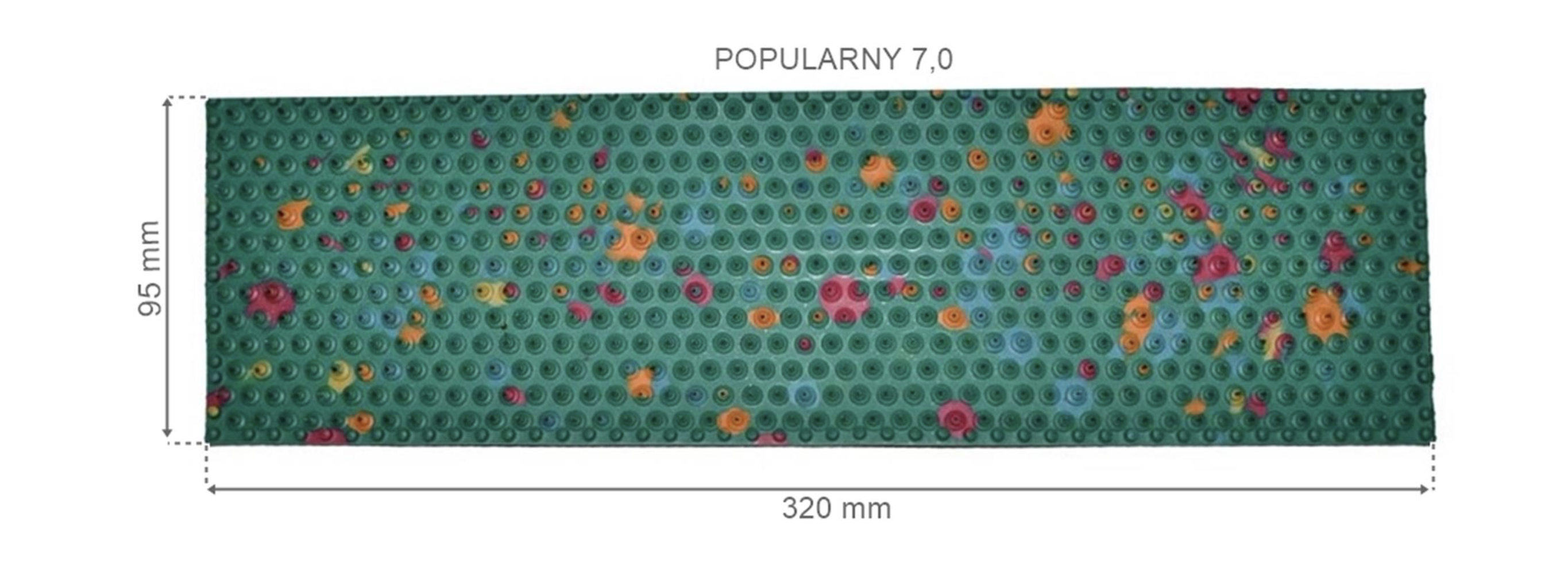 Aplikator wieloigłowy Lyapko „Popularny” 7,0 – jest niewielką matą o niewątpliwie dużych możliwościach. Dzięki swym wymiarom i dużemu rozstawowi igieł posiada podwyższoną intensywność i efektywność oddziaływania. Można ją stosować miejscowo na różnych odcinkach ciała. Może być stosowana w miejscach odczuwania największego bólu, bądź w strefach największego umiejscowienia punktów akupunkturowych. Aplikator- mata „Popularny” 7,0 nie wymaga dodatkowego wysiłku od pacjenta oraz pomocy innych osób. Skutecznie usuwa ból, zmniejsza napięcia i zmęczenie, a rano naładowuje organizm dodatkową energią na cały dzień. Rozstaw igieł maty wieloigłowej „Popularny” wynosi 7 mm co kwalifikuje go do stosowanie przez osoby o mniejszej wrażliwości skóry. Aplikator Lyapko „Popularny” 7,0 mogą stosować również o tęższej budowie ciała.