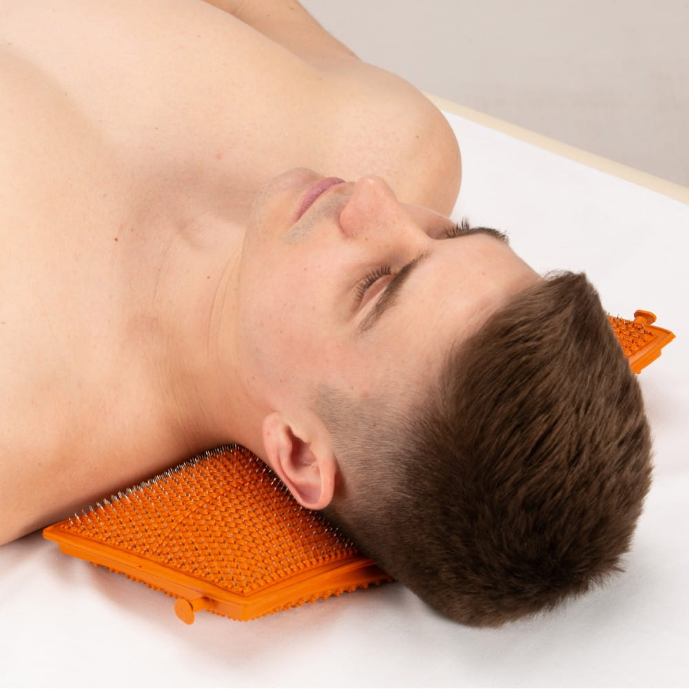 Mata do masażu Poduszka Lyapko doskonale dopasowuje się do fizjologicznych krzywizn ciała i pozwala na dostosowanie odpowiedniego nacisku igieł na skórę. Poduszka wieloigłowa Lyapko polecana jest do stosowania na okolice szyi. Sprawdza się także na pasie barkowym, na odcinku kręgosłupa lędźwiowego oraz na innych częściach ciała. Matę Poduszkę Lyapko można wykorzystywać osobno bądź w zestawie z innymi matami. Podstawowym warunkiem prawidłowego zabiegu z użyciem maty jest równomierne rozłożenie ciężaru ciała na całej powierzchni maty. Aby wykonać zabieg z użyciem Poduszki należy po prostu napompować poduszkę powietrzem. Stopień wypełnienia poduszki powietrzem zależy od indywidualnych odczuć w kontakcie z matą. Jeśli chcemy aby odczucia pod czas zabiegu były bardziej intensywne – powinniśmy napompować poduszkę mocniej i odwrotnie. Aby uzyskać delikatniejsze doznania, poduszka powinna zostać wypełniona powietrzem mniej intensywnie. Gumowe zaślepki pomagają skorygować stopień nacisku igieł. Wskaźnikiem prawidłowego użytkowania maty jest poczucie komfortu podczas zabiegu. Ze względu na swoją konstrukcję poduszkę Lyapko możemy wykorzystywać wygodnie zarówno w pozycji leżącej, siedzącej, stojącej, dostosowując kształt do indywidualnych cech fizjologicznych. Gumowe wypustki na odwrocie poduszki mogą być używane do masażu powierzchni skóry jako samodzielne urządzenie do akupresury z delikatnym efektem masażu. Pełnią także funkcję antypoślizgową. Po zakończeniu zabiegu uwalniamy powietrze z komory i składamy poduszkę. Cechy poduszki do masażu Lyapko: – zapewnia większy nacisk na skórę podczas zabiegu; – można ją położyć na idealnie płaskiej powierzchni; – powierzchnia bez igieł służy do masażu akupresurowego.CZYSZCZENIE