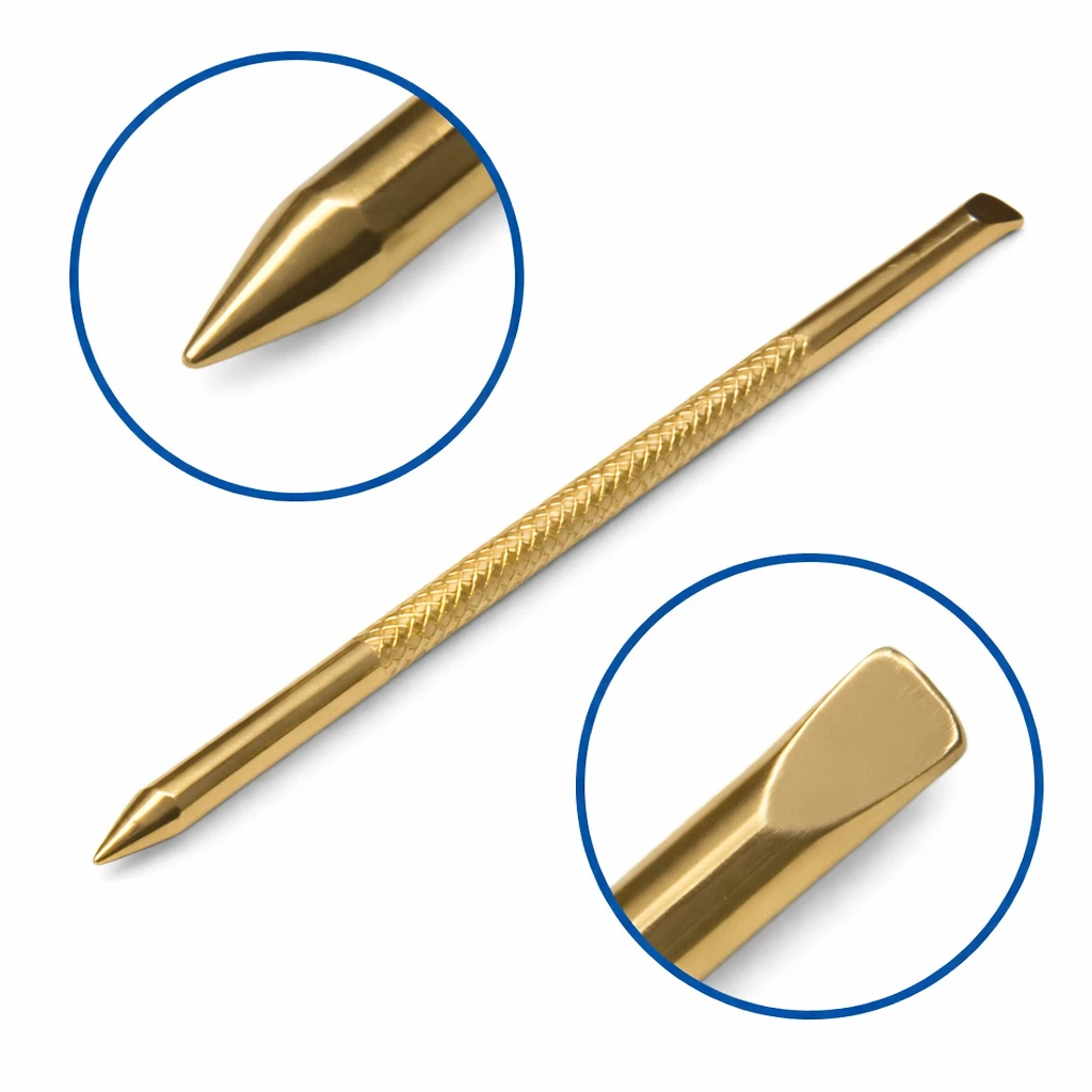 Piny są narzędziami wykorzystywanymi w Pinoterapii/Pinopresurze – metodzie stosowanej w leczeniu bólu, łagodzenia następstw urazów czy schorzeń o podłożu ortopedycznym i neurologicznym wykorzystaniem technik ucisku wybranych punktów na ciele. | Piny to narzędzia wykonane z wysokiej jakości materiału, z precyzyjnie szlifowanymi końcówkami. Z jednej strony posiadają ostre, szpiczaste zakończenie pozwalające na efektywne wywoływanie impulsów nerwowych, z drugiej płaską końcówkę z powodzeniem wykorzystywaną do pracy na powięzi. Znajdujące się na środku wytłoczony wzór zapobiega ślizganiu się narzędzia w dłoni dając większą kontrolę i precyzję ruchu.