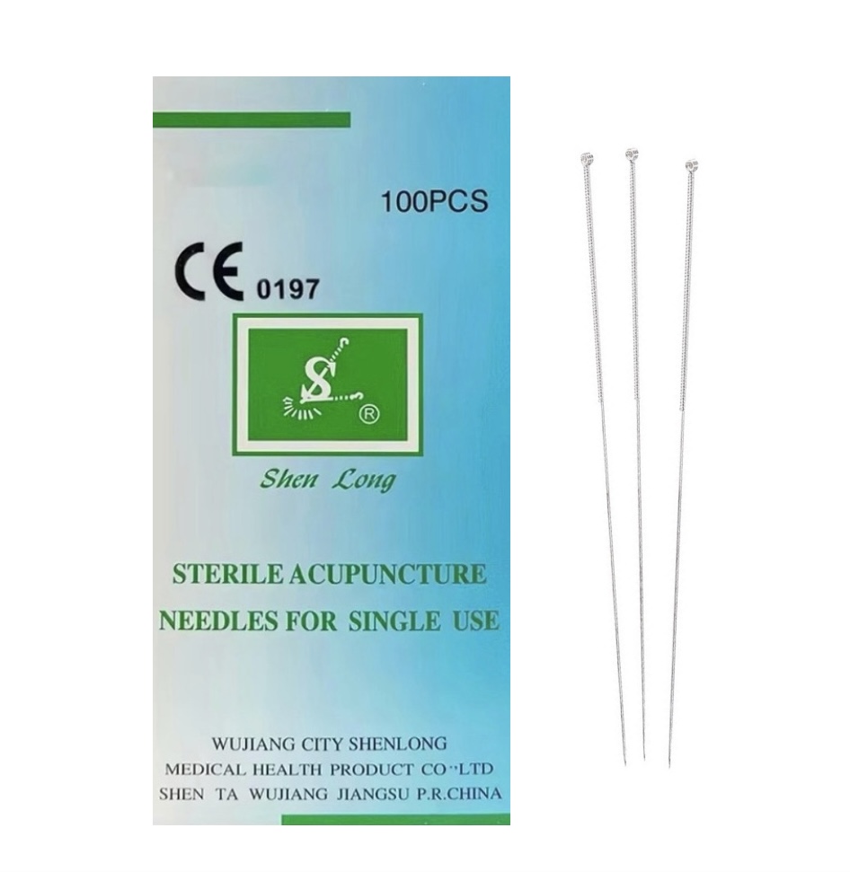 Igły do akupunktury i suchego igłowania marki Shen Long posiadają uchwyt typu chińskiego z pętelką.